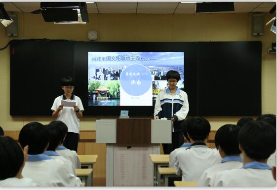 6月5日上午,历城二中高二7班胡魁标老师组织同学围绕“圆文明城市梦,建和谐美善城”开展了一堂令人印象深刻的班会课。让学生们了解创城,参与创城,用实际行动传播文明,圆济南一个文明城市梦。