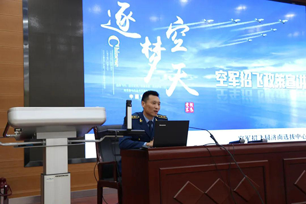 10月28日下午,空军济南招飞中心吕巧鹏干事一行来到历城二中,在日新楼一楼报告厅为高三学生作2021年招飞宣讲工作,我校陈国强副校长主持活动。