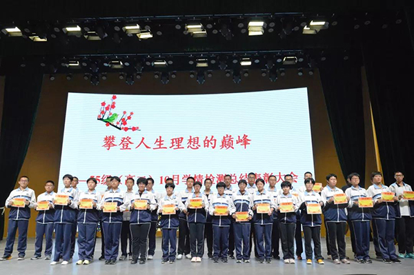 为更好地总结经验教训,促进下一阶段的学习,10月22日下午, 历城二中55级(高二)十月份学情检测总结表彰大会在闻韶艺术馆大礼堂举行。会议由学生会副主席张子彤同学主持。