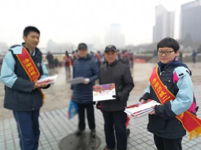 2月28日上午10点,历城二中53级高二的学生们在“济南时报泉城义工在行动”组织的带领下,参加了济南时报举办的“禁燃烟花爆竹,从我做起”活动。本次宣传禁燃烟花爆竹活动积极响应了十九大号召,传承卫生城市之风,保护泉城济南美丽家园,共享碧水蓝天。