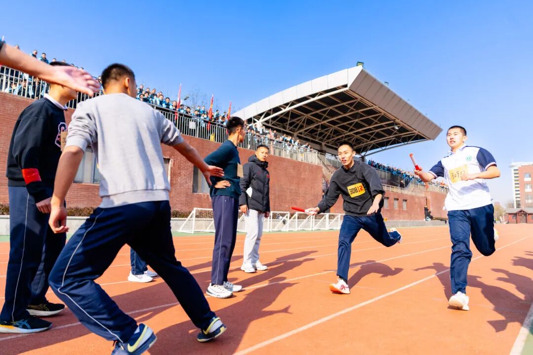 冬日的冷意被奔跑的脚步踏碎,呼出的白气与挥洒的汗水交织,在阳光下凝成青春最动人的模样。接力棒在掌心间迅疾传递,每一次交接都精准得如同心跳的节拍,那是朝夕相处的默契,更是并肩作战的信任。