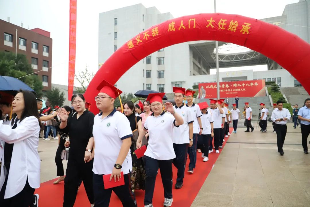 在老师和家长的陪伴下,同学们走过成人门、成才门、成功门,回到班内参加十八岁成人励志主题班会。