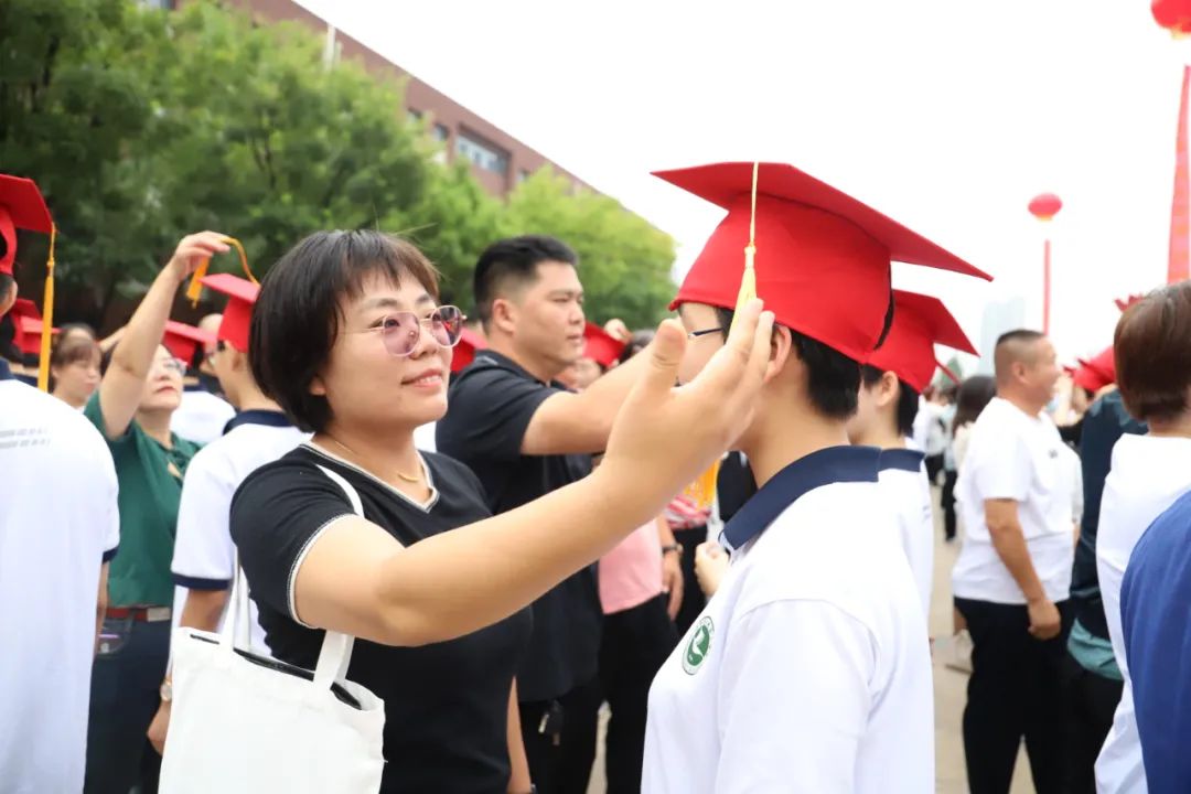 家长们为孩子庄重地戴上成人仪式帽,拨穗正冠,勉励成长,叮嘱孩子们要对自己负责,对家庭负责,对社会和国家负责。孩子们鞠躬拜谢,感恩父母十八年来含辛茹苦的培养。