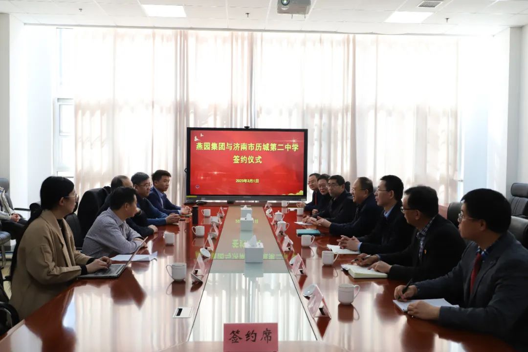 3月1日上午,燕园集团与济南市历城第二中学签约仪式在日新楼二楼会议室举行。北京大学数学学院教授、博士生导师柳彬,北京大学中国语言文学系教授漆永祥,北京燕园天地科技有限公司总裁陈树军一行与历城区教育和体育局局长,历城二中党委书记、校长李新生,执行校长李矿水等领导座谈交流。仪式由学校副校长岳善华主持。