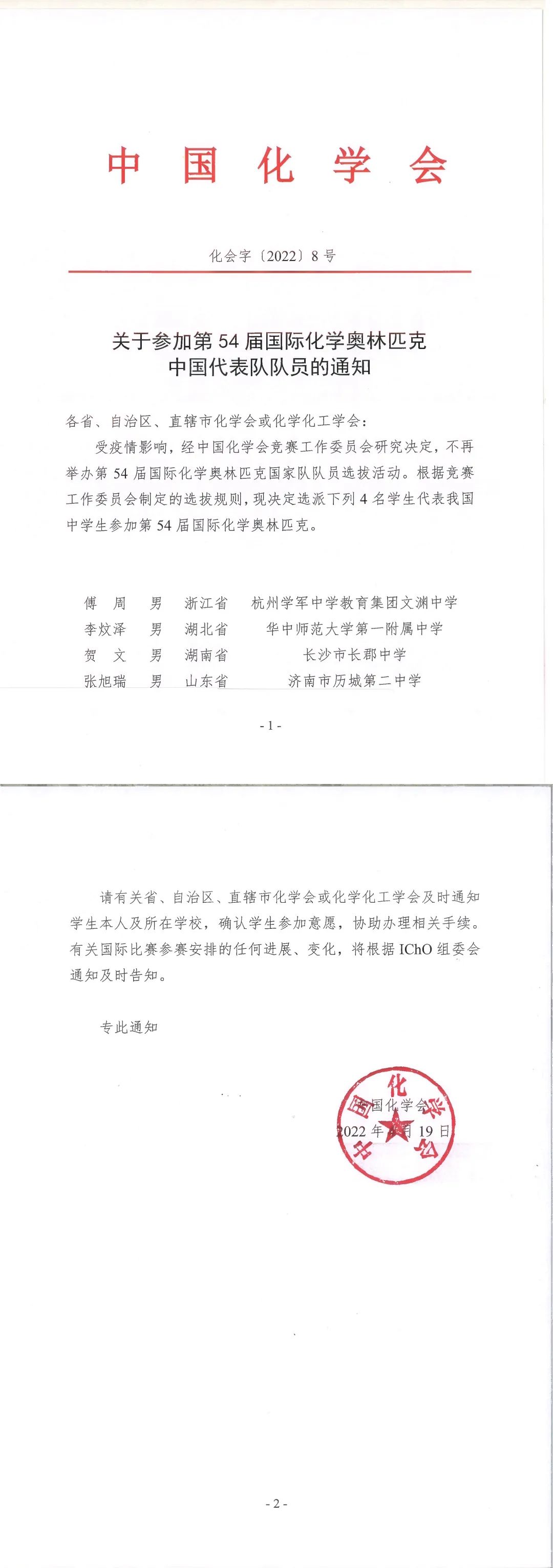 近日,中国化学会公布了第54届国际化学奥林匹克的中国队阵容。其中,济南市历城第二中学张旭瑞名列其中,成为中国队四人之一、山东省唯一入选学生。此前,张旭瑞在第35届中国化学奥林匹克竞赛决赛中获得金牌,保送北京大学。