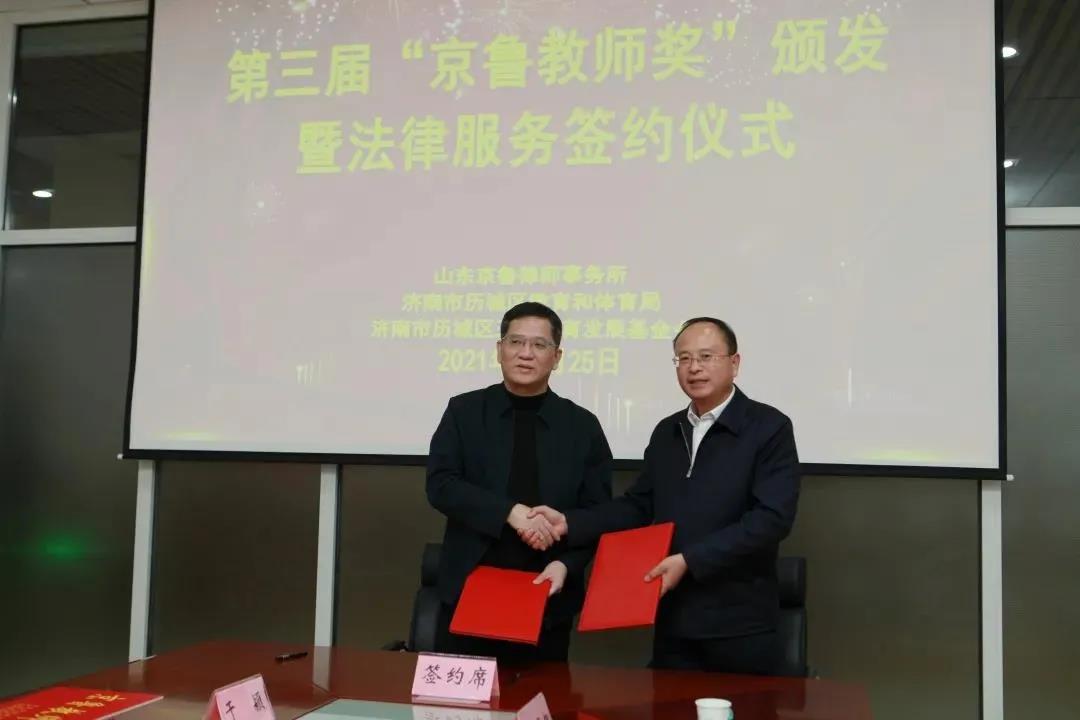 颁奖仪式上,山东京鲁律师事务所与历城区教育和体育局还签署了法律服务意向书。京鲁律师事务所将指派专业的律师团队,为历城辖区内的学校常年提供优质专业的法律服务。