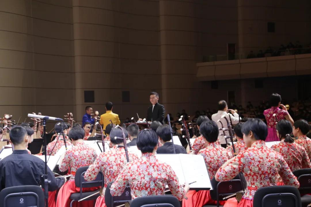 音乐会分为上下两个半场。上半场由学校国乐团团长田玉坤指挥。民族管弦乐合奏《丰收锣鼓》,充分发挥中国丰富多彩的打击乐器的表现能力,既有民族风格,又具时代特点。细腻深沉、委婉动情,令人催人泪下的《悼歌》,让师生回忆起2020年之初共同抗争疫情的场景,缅怀在疫情中逝去的生命,致敬逆行英雄。曲风一转,《百鸟朝凤》以热情欢快的旋律与百鸟和鸣之声,表现了一派生气盎然的大自然景象。朗朗上口的《前世今生》,带师生重回西子湖畔,娓娓将爱情传说道来。《青年舞曲》以美丽青春为放歌,以活泼明快的舞曲节奏,咏歌了青年人在歌舞中起舞,在舞曲中歌唱的欢乐场面。