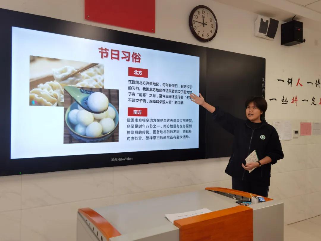 在冬至主题班会课上,师生共同学习冬至有关的文化习俗,将我国的优秀传统文化和习俗传承下去。
