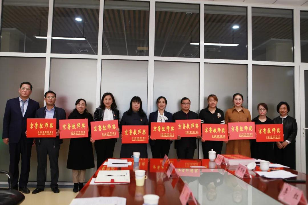 山东京鲁律师事务所主任郝纪勇,历城区教育和体育局党组书记、局长李新生等领导为高月锋、刘莉莉、李琴、王潘等18名优秀教师颁发了“京鲁教师奖”。