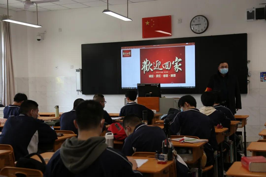 4月14日上午,“欢迎回家”这四个字早早地打在了每一个高三班级的屏幕上。此次返校,学校采取分批次的方式,按照班级的顺序,将1800余名学生分成七组,每组间隔半小时入校,保证了进校的速度和道路的通畅。上午11点,学生全部顺利返校。