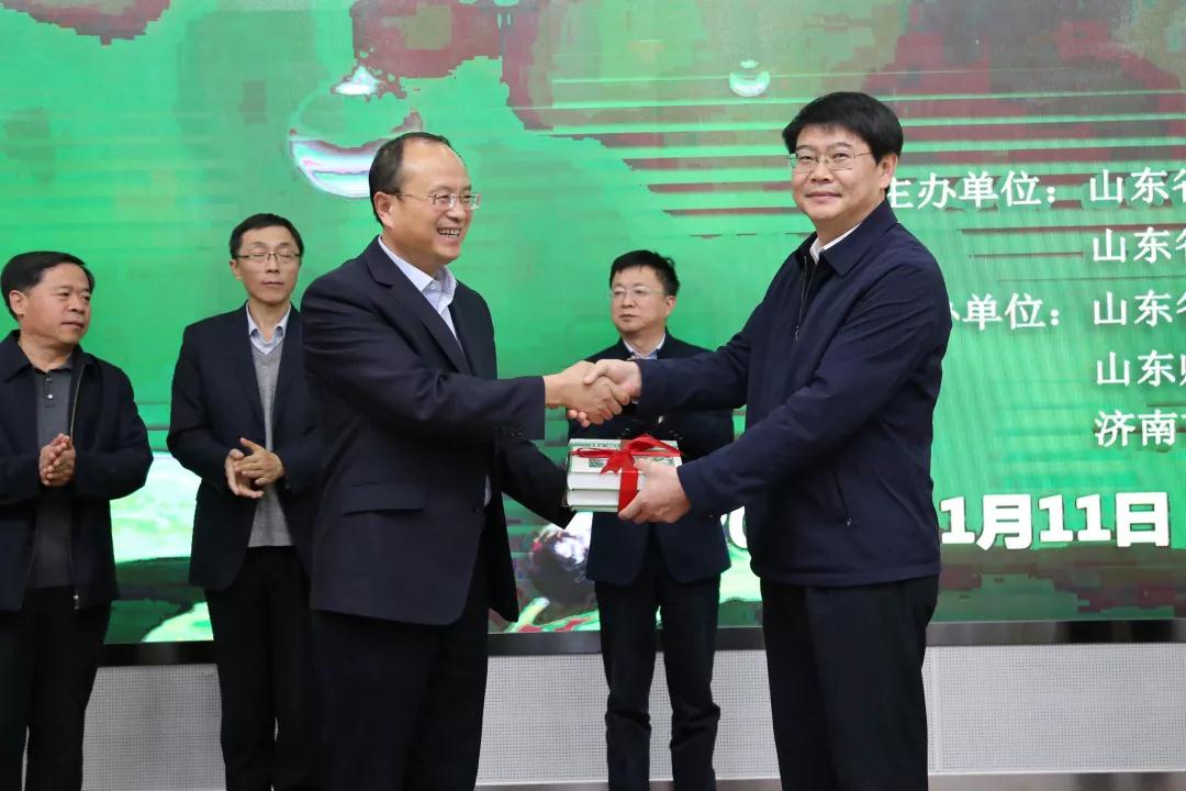 随后,山东省自然资源厅二级巡视员董瑞忠向历城二中赠送图书《山东木本植物志》《山东珍稀濒危保护树种》,李新生校长代表学校接受赠书。
