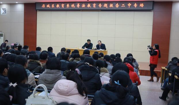 12月5日下午,济南公安局历城分局法制大队一中队副中队长孔德栋来到历城二中,为全体教师做了一场精彩的普法教育专题报告,报告由李新生校长主持。