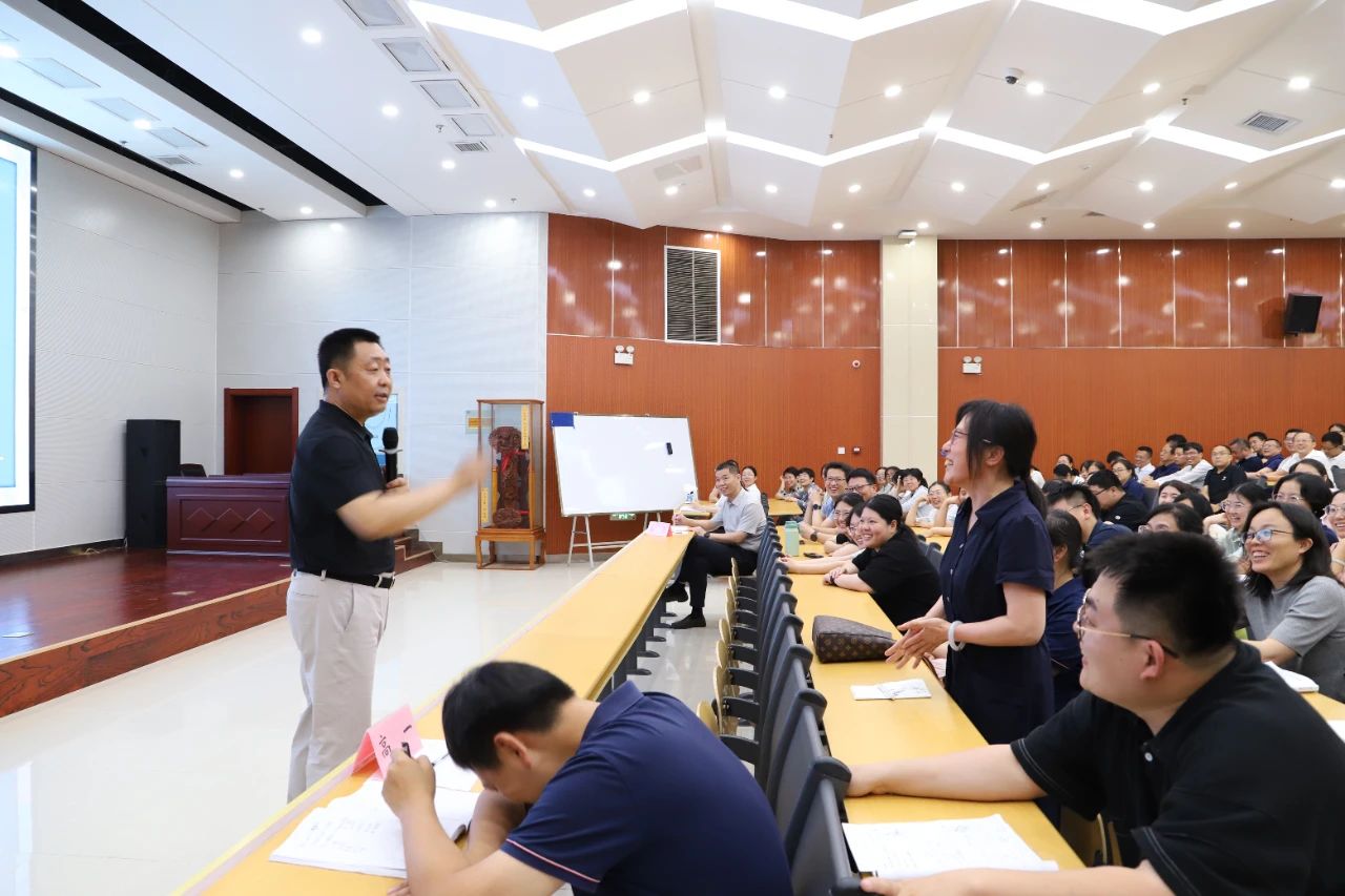 5月24日下午,山东省教育发展促进会心理健康专业委员会副会长兼秘书长、民进山东省委家庭教育促进工作委员会副主任、山东省心理卫生协会家庭治疗学组副主任委员、聊城大学高等教育研究院特聘教授王力波老师来到二中讲堂。学生身心健康发展需要教师的用心呵护,而高中教师担当着各种角色也面临着各方面的压力,如何呵护教师的身心健康发展对于教育教学工作特别的重要。王力波教授从“教师与家长双重角色的胜任力”视角,用生动形象的讲解,为老师们介绍家庭治疗的相关理论,深入解读父母与孩子的“理解层次”,引导老师们通过孩子的行为看到孩子深层次的应对方式、感受、感受的感受、观点、信念、期待、渴望等等,进而看到每一个孩子的旺盛的生命力,启发老师们在不同的身份角色下,关爱自己的身心健康发展。同时,也深度理解孩子,提升工作的胜任力,让教育事业更庄重、更有深度。