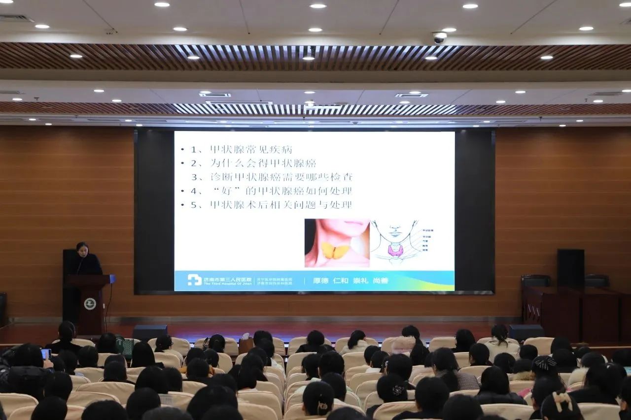 为增强女教师自我保健和疾病防治意识,树立健康生活理念,3月11日下午,历城二中邀请济南市第三人民医院甲乳外科的主治医师王静为全体女教师们带来专业科普讲座。