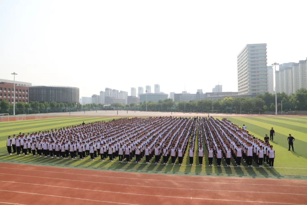 历城二中党委副书记李玉华讲话,他祝愿同学们满载军训的收获,秉承二中“人生在勤 志达天下”的校训,在未来的高中三年甚至更长的人生路上,乘风破浪,直挂云帆!