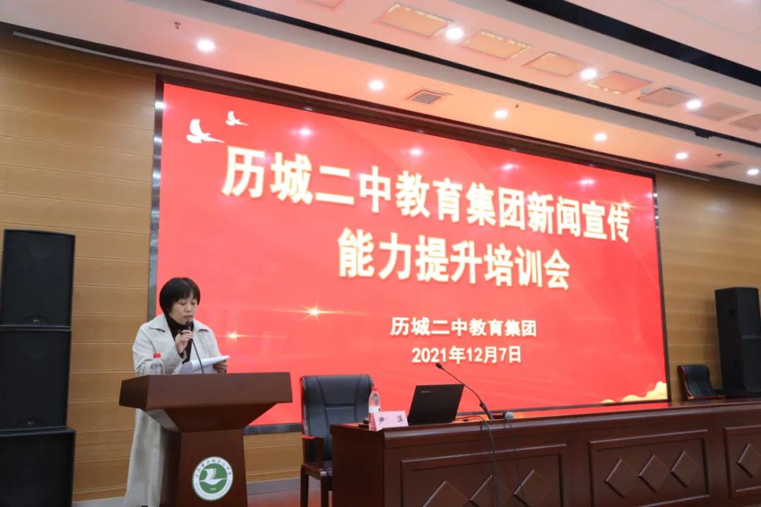 12月7日下午5点05分,历城二中、济南稼轩学校、济南稼轩学校小学部全体通讯员及学生记者于日新楼一楼报告厅参加新闻宣传能力提升培训会。到场的嘉宾有济南日报报业集团教育事业中心副主任尹萍、济南报业记者朱晓燕。