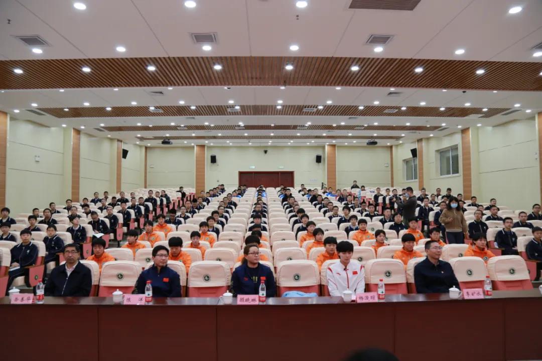 这是山东省游泳中心携东京奥运会冠军杨浚瑄一行走进历城二中进行宣讲系列活动的一个片段。11月10日下午,杨浚瑄在日新楼报告厅为同学们带来了一场精彩的报告。山东省游泳运动管理中心副主任顾晓琳,山东省游泳运动管理中心竞训科长、游泳队领队陈洋,历城二中执行校长李矿水、副校长岳善华,以及体育教练员,足球、篮球队员和部分奥赛学生参加活动。活动由学校团委副书记王宴明主持。