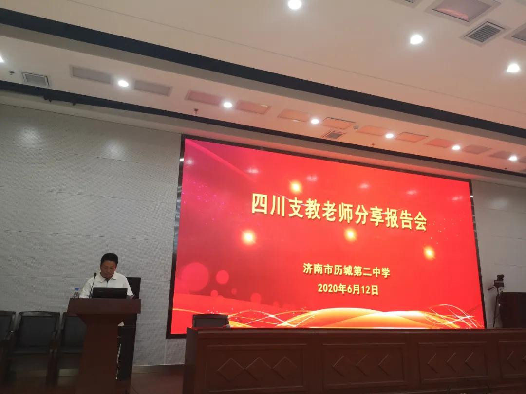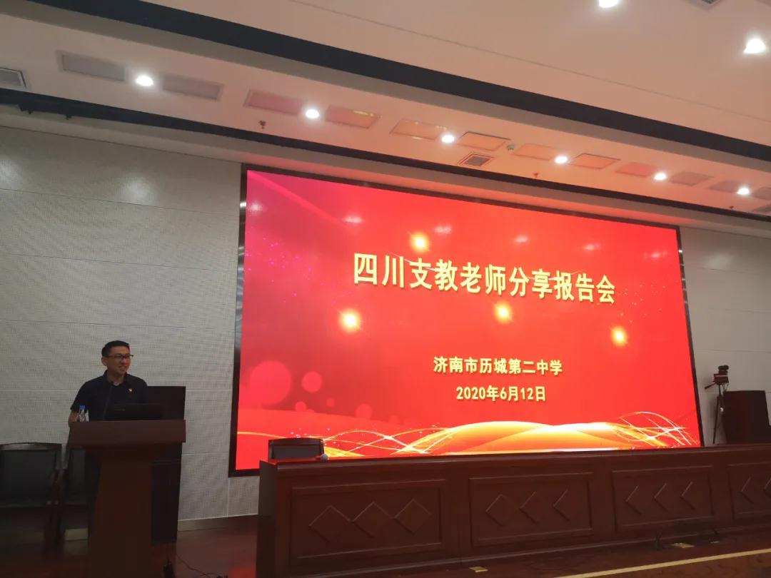 6月12日下午,历城二中支教教师分享报告会在日新楼二楼西报告厅举行,高一高二全体教师参加,共同聆听了牟喆和陈伟两位老师的支教分享,活动由团委副书记白芳老师主持。