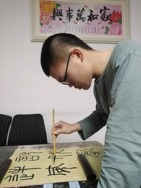 我嗜好书法,以求修养心性体悟传统艺术之美。在稼轩就读时,我曾是历城二中艺术团的一员,并在书法社研习。在老师的耐心指导下,我增加了对书法的了解,真正爱上了书法。虽然书法的学习起步较晚,但我对书法的热情是无比深挚。