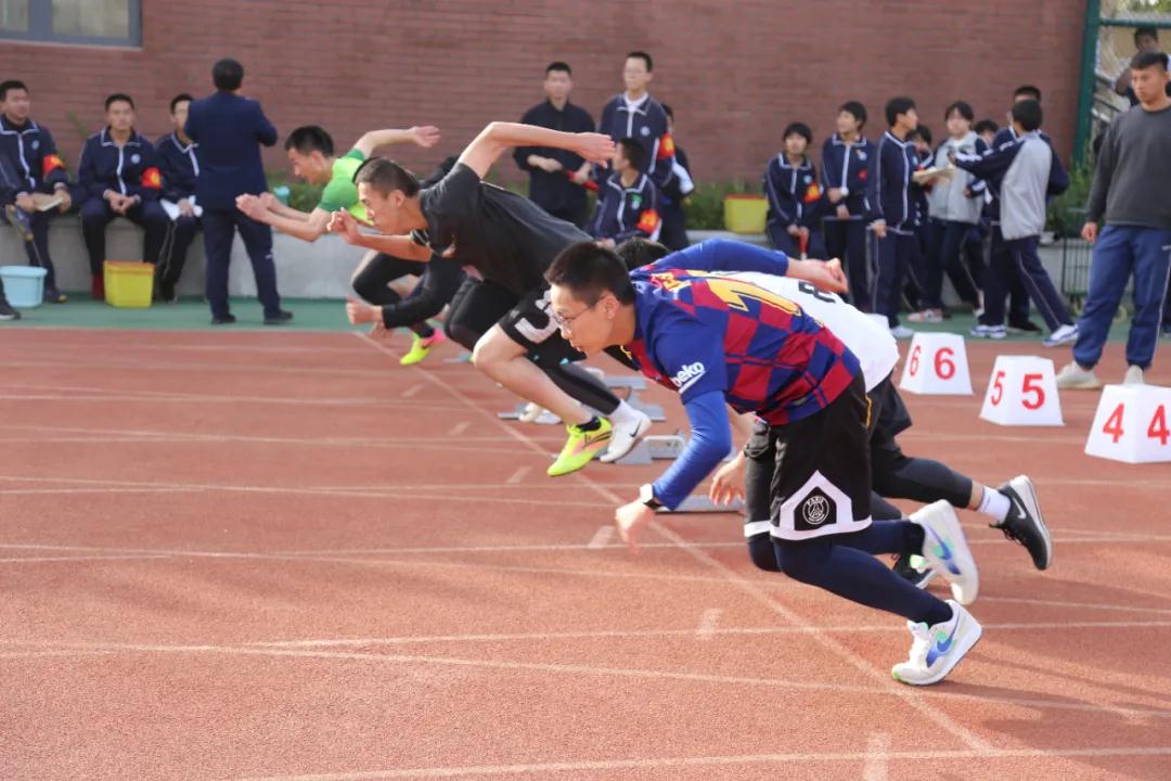 体育节第一天,共举行包括高中三个年级男子女子组100m预赛决赛、1500m决赛、跳高、跳远、铅球决赛以及排球足球的团体决赛等项目。