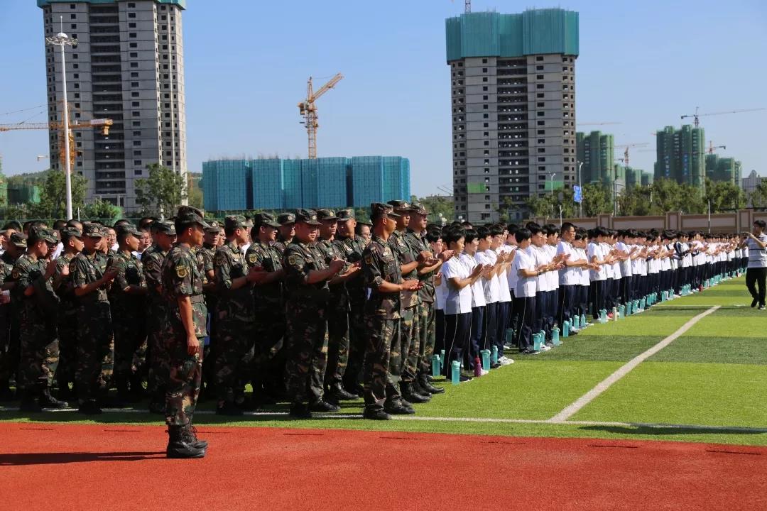 为使我校高一新同学迅速适应寄宿制学校的学习和生活,8月17日,56级高一新生入校,举行开学适应性训练动员大会。马文杰队长,我校李矿水副校长、56级高一王春刚主任、王东军副主任、王宴明副主任、张遵磊副主任也参与了本次活动。活动由张希峰副主任主持。动员大会在庄严的国歌声中拉开帷幕。