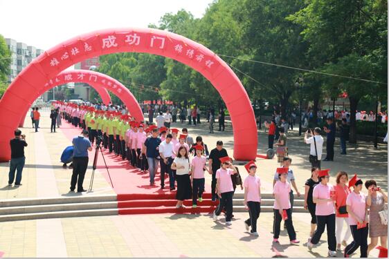 接着,家长与学生手牵手走上“成人路”,接连走过 “成人门”,走过“状元门”等寓意深刻的拱门,使学生们的心灵受到了强大的洗礼与震撼,也使与会家长获得了巨大的欣慰与感动。