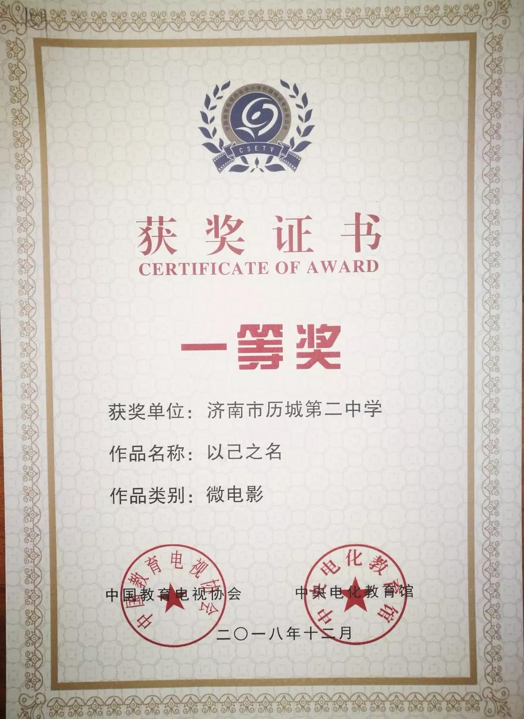 由中央电教馆主办的第十五届全国校园影视大赛于2018年12月落下帷幕,我校电视台社团制作的微电影《五十五张红心卡片》和《以己之名》获得大赛微电影类一等奖。