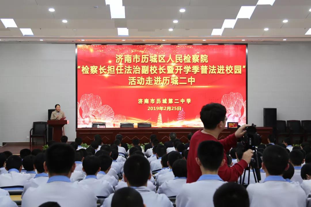 2月25日,济南市历城区人民检察院“检察长担任法治副校长暨开学季普法进校园”活动在历城二中举行。历城区检察院党组书记、检察长刘建,历城区检察院党组副书记 、副检察长曲士军,历城区教育局党委书记、局长庞振福,共青团历城区委书记方君,历城区教育局党委委员、副局长、历城二中党委书记、校长李新生,历城区检察院未成年检察办公室负责人宋薇和科员张嘉蓓,历城区检察院办公室科员刘洋,历城二中副校长、高一年级主任陈国强,历城二中教导处主任、奥赛负责人岳善华参加了会议活动。