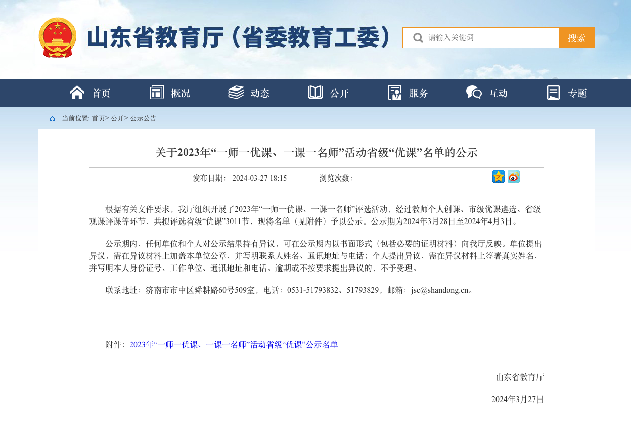 近日,省教育厅发布《关于2023年“一师一优课、一课一名师”活动省级“优课”名单的公示》。经过教师个人创课、市级优课遴选、省级观课评课等环节,共拟评选省级“优课”3011节。