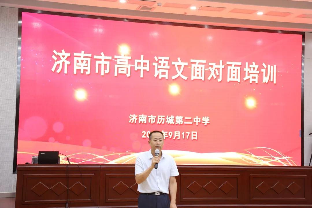 9月17日,济南市高三语文课堂教学研讨活动在历城二中举行,来自济南市各高中的语文老师齐聚日新楼二楼西报告厅围绕高三一轮文言文复习展开研讨,交流经验,相互学习。济南市教研院万福成老师组织,历城区教研中心王成德老师主持此次活动。