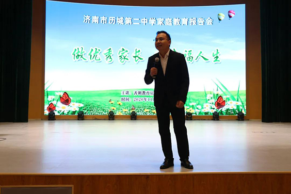 随后,青年应用心理学专家房善朝老师进行主题为《做优秀家长,度幸福人生》的演讲,他指出,家长应维护好家庭和睦关系,对学生要做到不伤自尊,帮助学生树立自信。各位学生家长深受启发,现场气氛热烈,掌声不断。