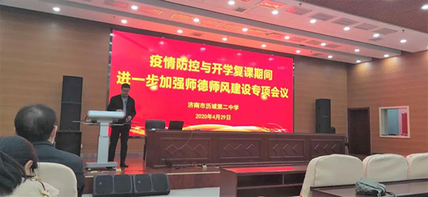 为进一步加强疫情防控期间的师德师风建设,提高教师师德修养,规范教师从教行为,遵守师德规范,4月29日下午,高一高二全体教师分别在日新楼一楼西和二楼西召开师德师风建设专题培训会。