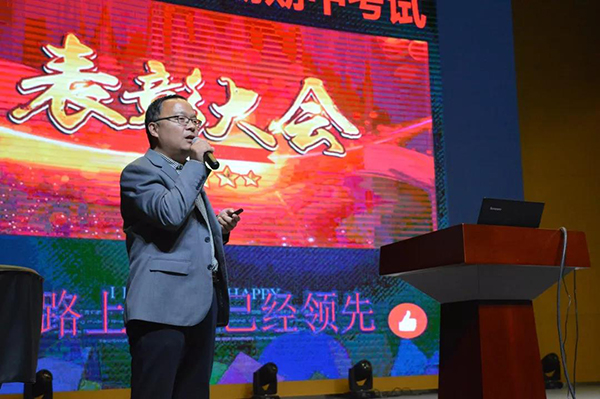 随后,田校长就本次期中考试情况,对优秀班级和优秀学生作出表彰。同时,田校长针对高考改革新特点,向同学们提出新要求,激励大家全力以赴、超越自我。