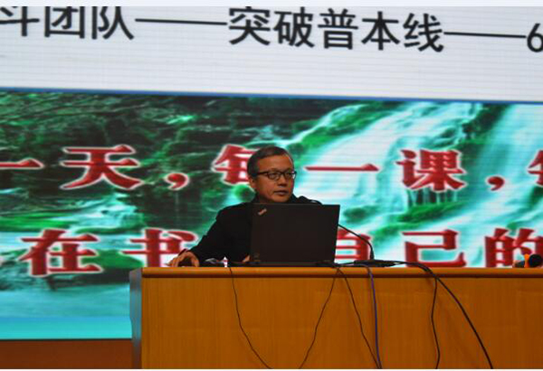 最后,陈国强副校长做了主题为“追求卓越 辉煌一八”的报告。他强调高考必须是零失误,每个同学应注重规范加强得分意识,有正确的态度并能在日常自律慎独。陈校长展示了2018年高考命题方向及考查内容,并通过班级规范“三字经”,敦促同学们抓紧时间从日常学习做起,从坐得住板凳做起,从细节做起来成就高考。