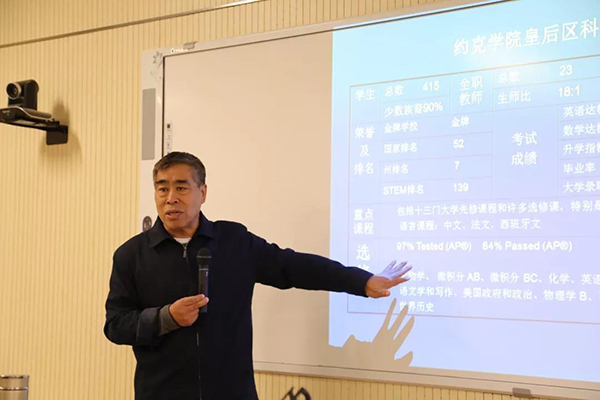 袁教授的报告以美国纽约9所高中为例,讲述了其发展历程、办学理念、课程结构、人才培养等方面的基本情况,并以此为主线解读了美国高中教育的办学经验和发展现状。袁教授的报告深入浅出,案例详实,既从国际化高中教育发展这一角度做了深刻剖析,又立足中国当前的教育实际做了横向分析,引发了大家很多的思考,听后受益匪浅。
