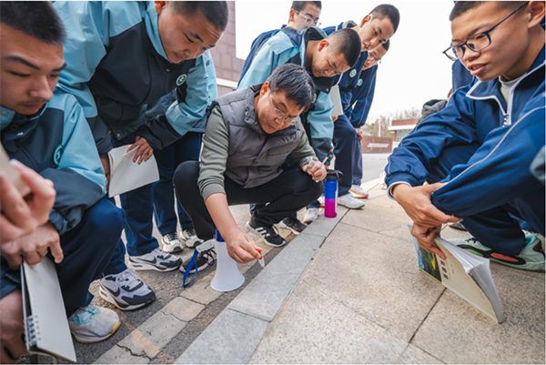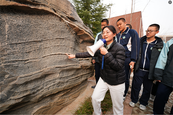 那些沉默矗立的岩石、广场角落的台阶、花坛里的小石子,沥青浇筑的小碎石马路,经过地理组老师们的开发,变身为地质的“活教材”,让学生深入理解了地球科学的奥秘。