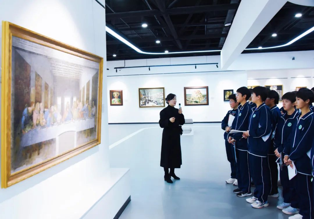 随着历城二中彩石校区《西方经典绘画500年美育教育专题展》的展出,索颖颖老师打破传统课堂教学模式,把美术课搬进了美育馆。