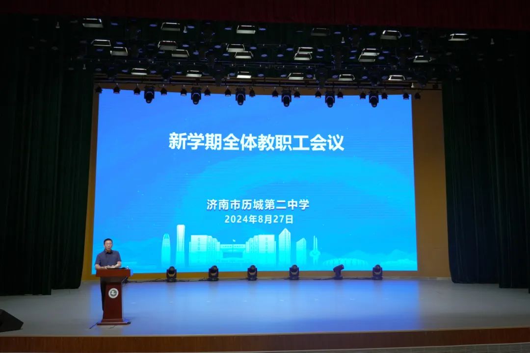 会议伊始,历城区政协副主席,历城区教育和体育局党组书记、局长,历城二中党委书记李新生做新学期动员大会。他号召大家在新学年弘扬践行教育家精神,打破思维惯式,用更加饱满的热情、更具教育智慧的状态来承担育人使命。
