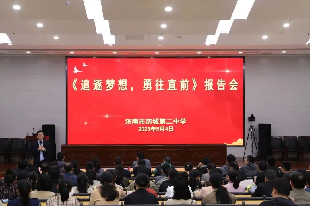5月4日—5日,二中讲堂名师系列讲座第四场分文理科在日新楼报告厅开启。山东省先进工作者、山东省五一劳动奖章获得者、齐鲁最美教师、齐鲁名师、山东特级教师、山东省优秀科普人物、学校科技创新教育负责人高月锋为老师们带来《追逐梦想 勇往直前》的报告。文科会场由教科室副主任张希峰主持,理科会场由教科室副主任张治国主持。