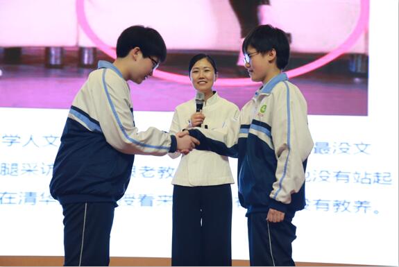 报告还通过升国旗唱国歌、能量朗读、餐前感恩、礼敬天地国家等环节,让大家懂得礼节、感恩,培养学生的大德,曲刚老师还与学生进行扳手腕的亲身体验,让学生找到人生梦想勇于战胜自我。