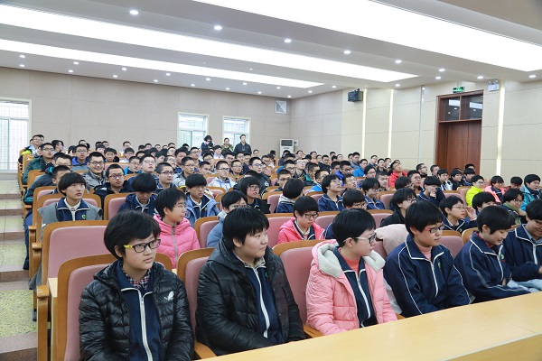11月24日上午,石油大学招办主任杨爱民来到历城二中,给学生做了招生专题报告,高二高三的部分学生参加了活动。学校副校长李矿水、副校长田庆民陪同并介绍了学校情况和高三基本情况。