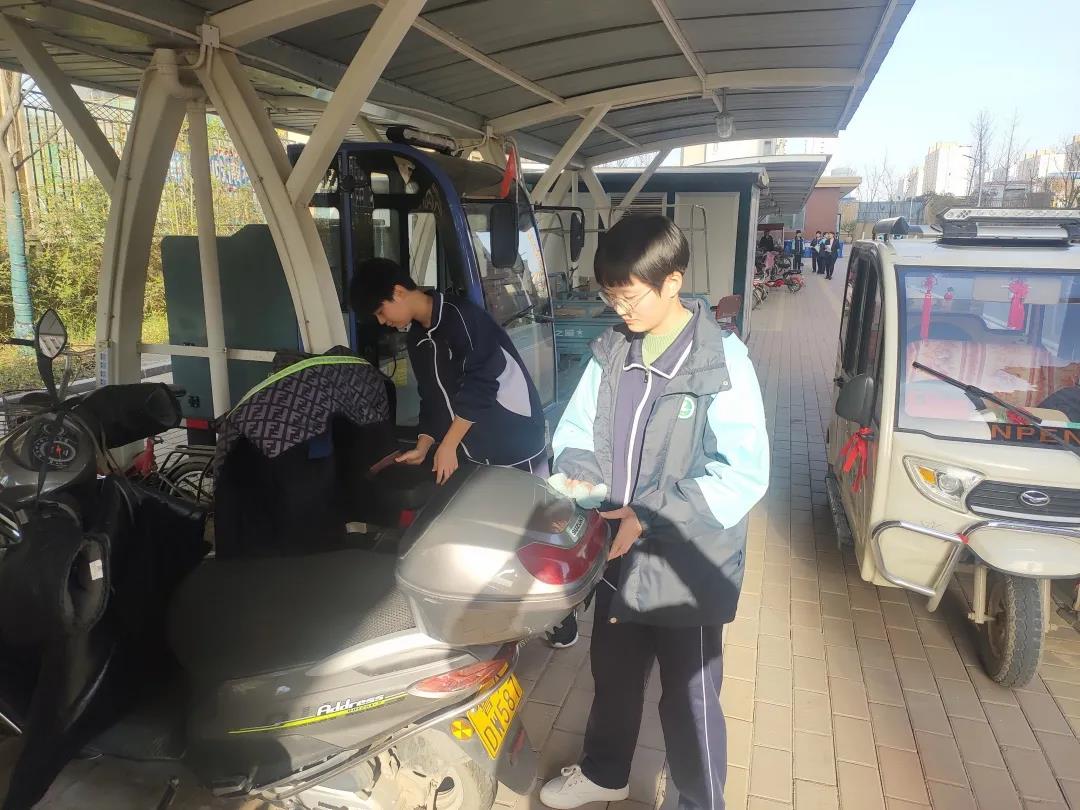 同学们抵达公寓后,公寓物业人员和班主任老师对同学们进行了周密的分工。同学们8-10人一组,有的小组进行车棚卫生整顿,清理棚蜘蛛网,将车辆摆放整齐,并把长久不用的自行车摆放到车棚里面,经常骑用的自行车摆放在外面,做到整齐美观。