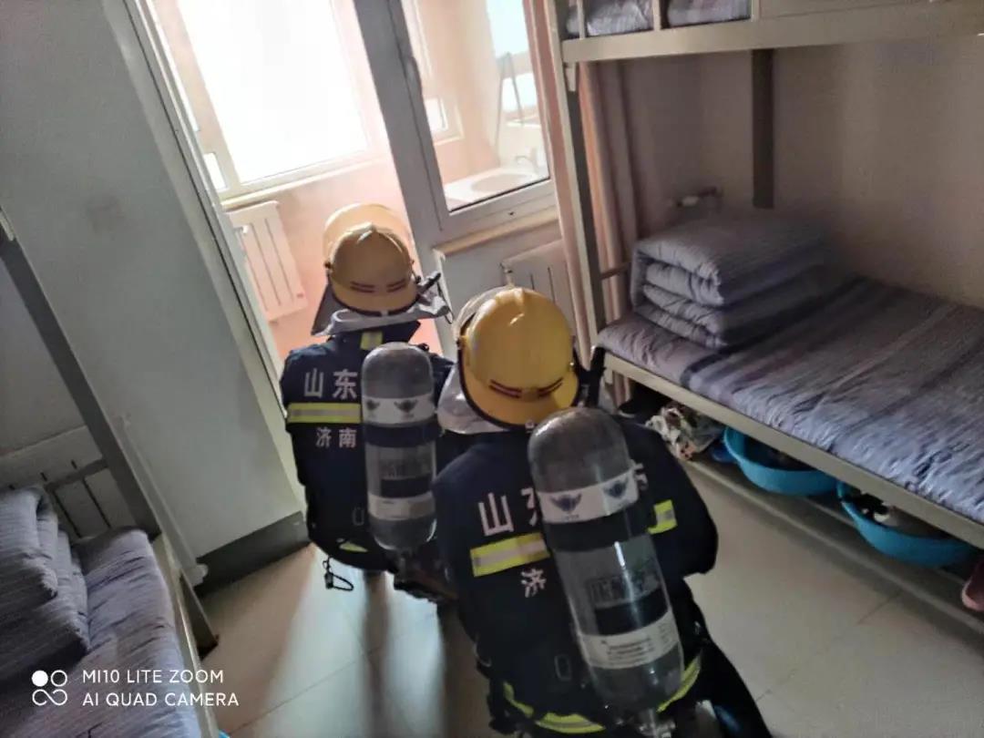演练开始前,学校总务处对宿舍管理人员及师生进行了疏散培训。山东省地震局、济南市应急局、历城区应急局、济南市红十字会及历城区教体局安全科参与并进行观摩指导,历城区唐冶消防救援中队参与演练并进行灭火展示,为演练提供了安全保障。
