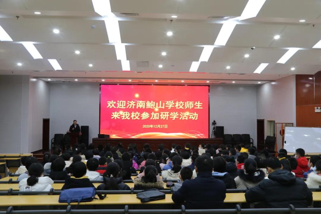 12月27日上午,济南市历城区鲍山学校初中部近百名师生到历城二中参加研学活动,体验高中创新实验课程,感受高中学习氛围。