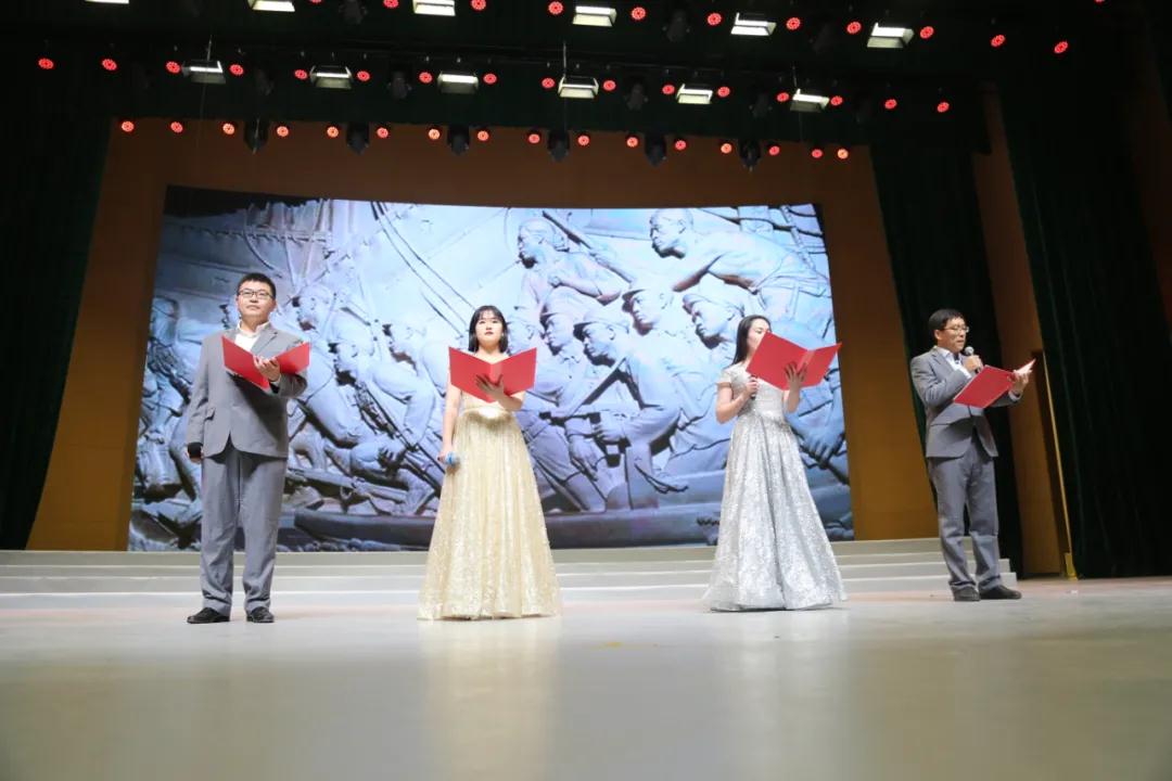 随后,由青年教师张玉、吕晓同、王宴明、王一鸣带来朗诵《同心气 壮山河》,四位教师用自己铿锵有力的话语向英雄致敬,向抗疫人员致敬,并向在座学生发出号召,希望青年一代走出一片锦绣前程,创造更大的辉煌。全场氛围在朗诵声与热烈的掌声中达到高潮。