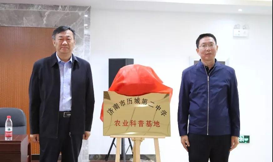 10月6日上午,山东省农业科学院—济南市历城第二中学农业科普基地揭牌仪式在山东省农科院试验示范基地学术报告厅举行。仪式上,山东省农业科学院副院长刘兆辉简要介绍了农科院的发展情况。副校长李矿水和刘兆辉院长共同为农业科普基地揭牌。我校聘请山东省农科院试验基地服务中心李文刚书记为学校农业科普基地副校长。我校高二年级副主任杜海峰讲话,对学生研学实践提出了具体要求。