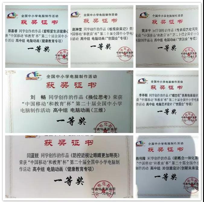 在本届比赛活动中,历城二中陈伟隆、刘畅、赵琳萱等14位选手的电脑作品入围全国赛,位居全国前列。经过主办单位(全国电脑活动组委会)组织的作品技术测试、网上公示、专家评选、作者面试(包括现场技术测试和学生答辩)等步骤产生并确定全国奖项等级。