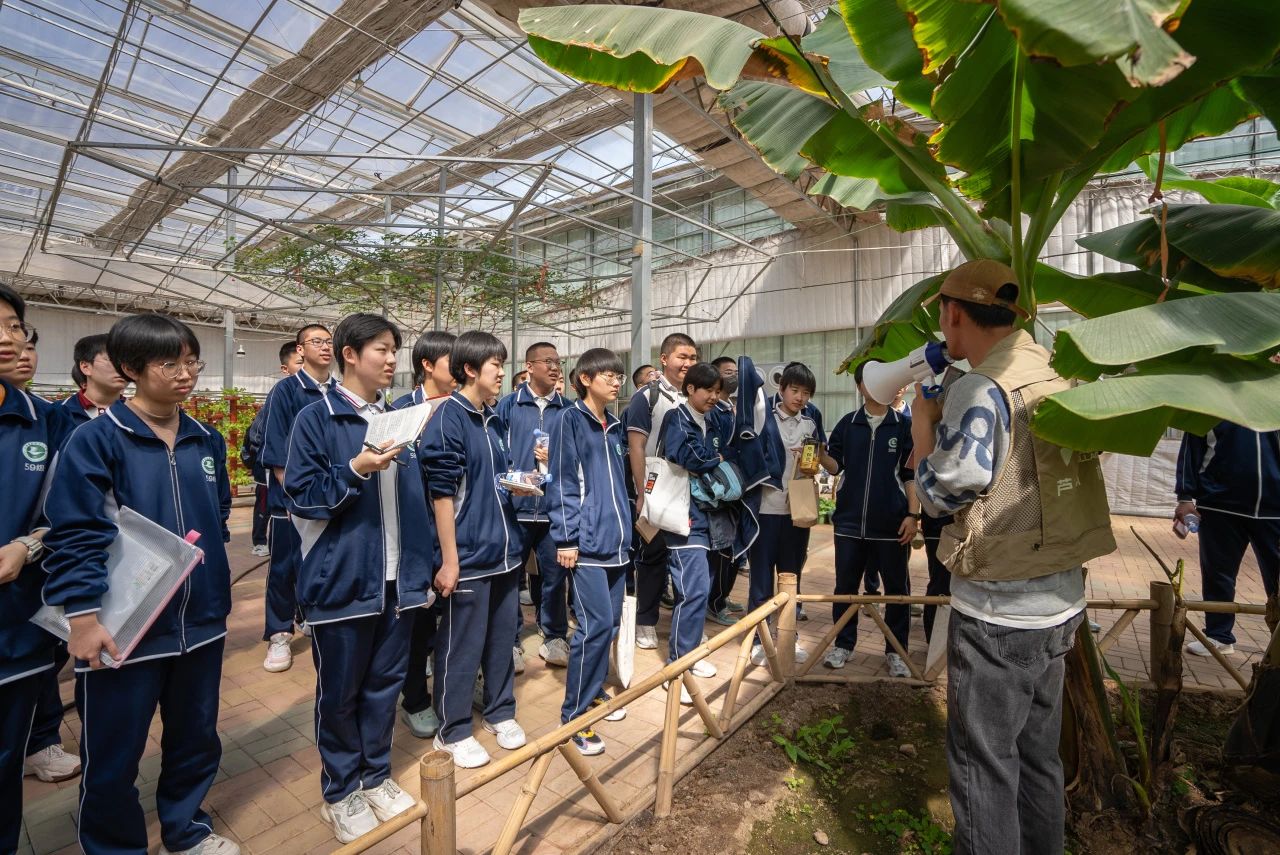 在智能化温室的控制大屏上,土壤温度、环境温度、湿度实时显示,数十种蔬菜、果木全部采用无土栽培。同学们随着工作人员的指引和讲解,了解香蕉、百香果等热带植物的生长习性,共同探究温室大棚的运作原理,并在工作人员的引导下进行扦插,每一位参观者都惊叹于当今先进农业技术。