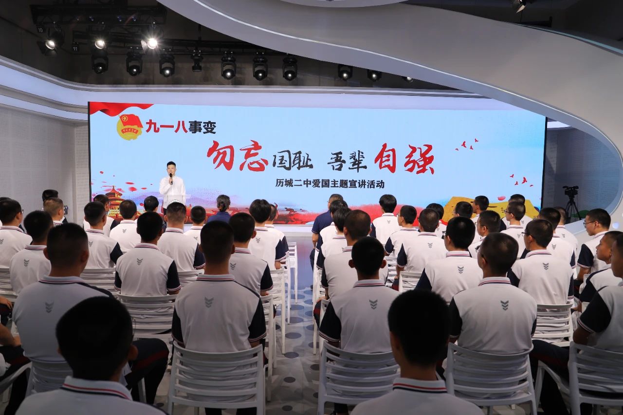 山东省演讲学会理事、济南市朗诵艺术家协会副秘书长于埔唯老师作了主题为《勿忘国耻 吾辈自强》的宣讲。历史长河奔流不息,中华少年使命在肩。他用一个个具体事例,激励同学们继承红色精神,坚定不移跟党走。