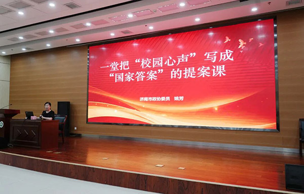 今天下午,学校团委组织举行了一堂把“校园心声”写成“国家答案”的提案课。由市政协委员姚芳授课。姚芳处长撰写的《关于“加快推动数字政府建设 引领驱动数字济南跨越式发展”的建议》在济南市第十五届政协会议上作大会发言;撰写的《关于在济南市老旧小区安装公共新能源汽车充电桩的建议》等4篇提案获评年度优秀政协提案,对政协提案的撰写有着深刻理解和丰富实践经验。